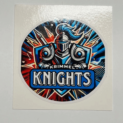 Featuring a bold and colorful design of the iconic Knight - this UV- and water-resistant sticker is the perfect way to add some spirited Knight fun to your accessories—water bottles, laptops, notebooks, and more!